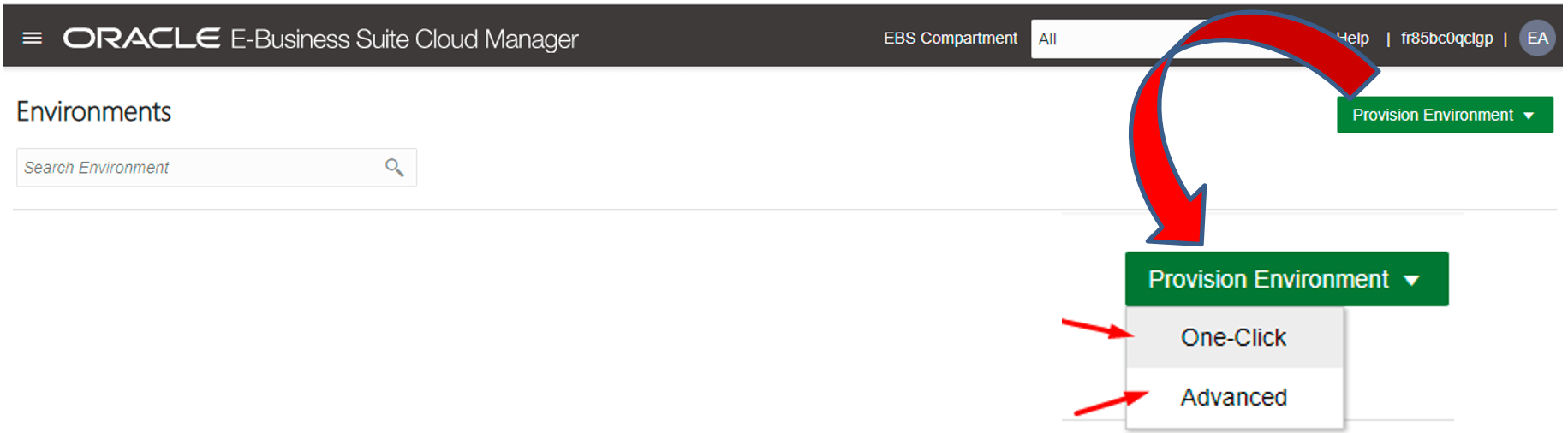 Advanced Provisioning can be customized with user-selected deployment options. This has the ability to create an environment from a backup of other environments and also provides application file system choices and Database choices such as– Compute, VM, Exadata.