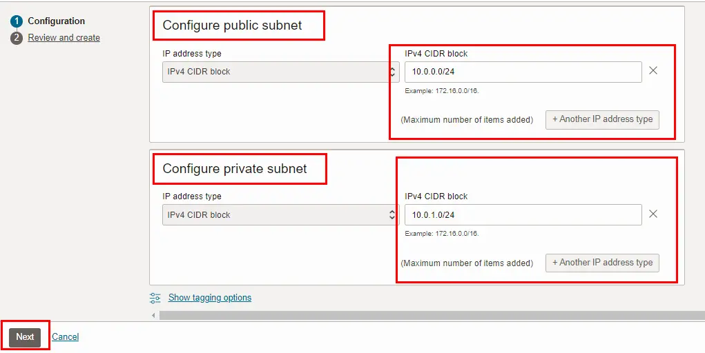 - Public Subnet CIDR Block: Enter 0.0.0/24