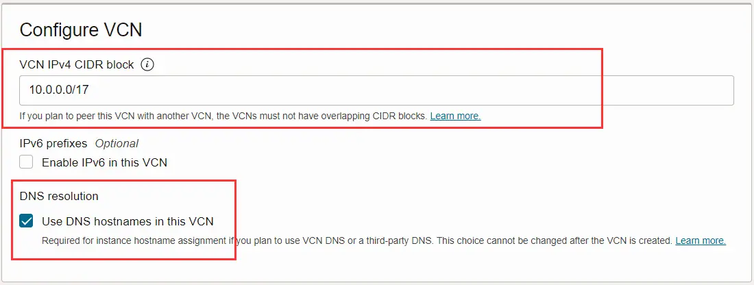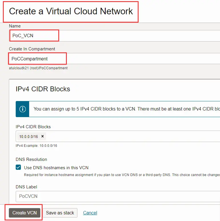 - Name: Enter name for VCN. (Ex. “PoC_VCN”)