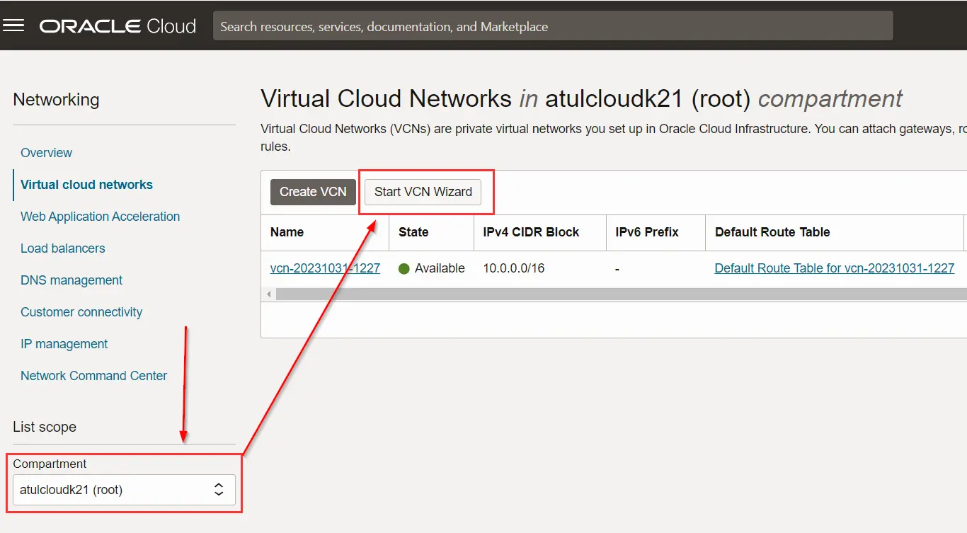 The above method was creating a VCN manually, We can choose another method to create a VCN which is VCN Wizard.