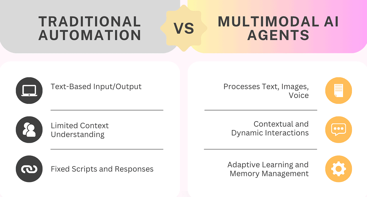 - Richer Context = Better Decisions: Multimodal agents understand situations more holistically, leading to smarter recommendations, insights, and actions.