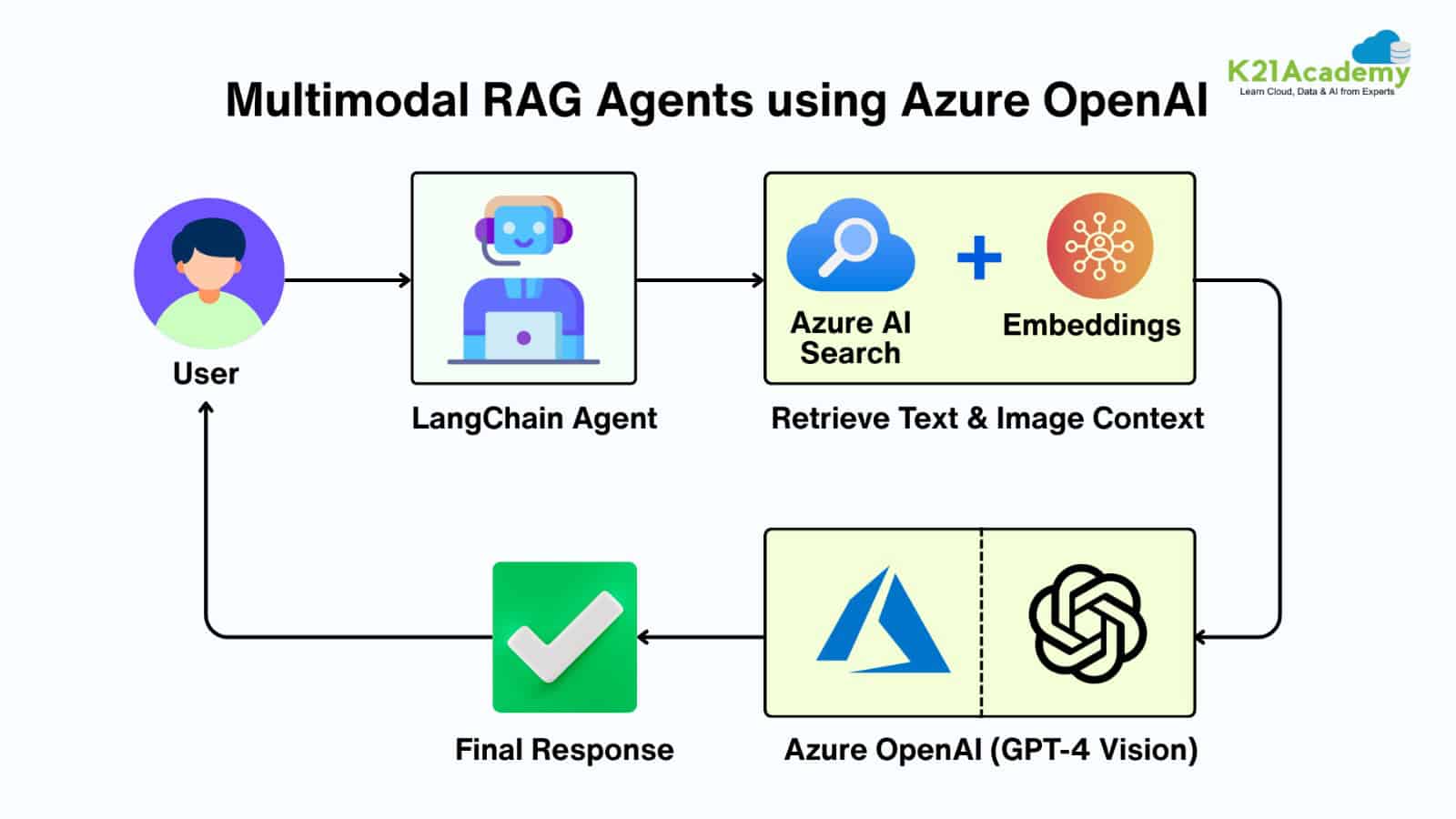 - Multimodal Inputs – The agent processes text via GPT-4, images via Azure AI Vision, and can be extended for voice using Azure Cognitive Services Speech.