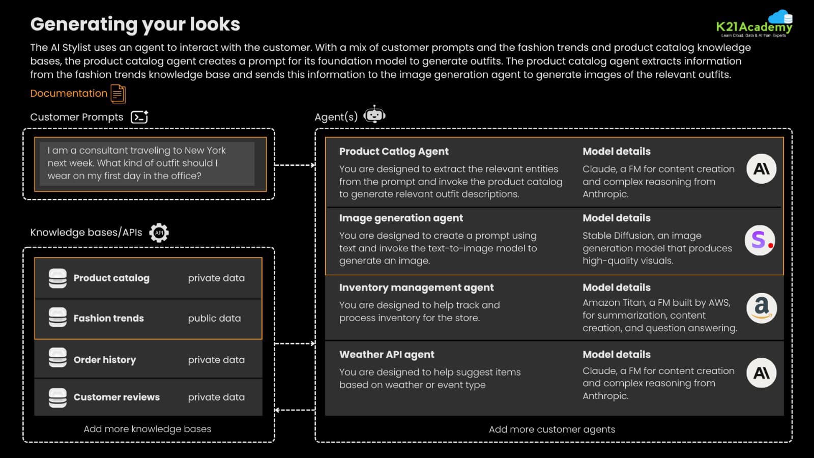 Fashion meets AI in this project, where we build an AI Stylist that provides personalized outfit recommendations based on user preferences and past purchase data. By leveraging AWS Personalize, we can use machine learning to analyze customer behavior and recommend outfits tailored to their style, body type, and preferences.