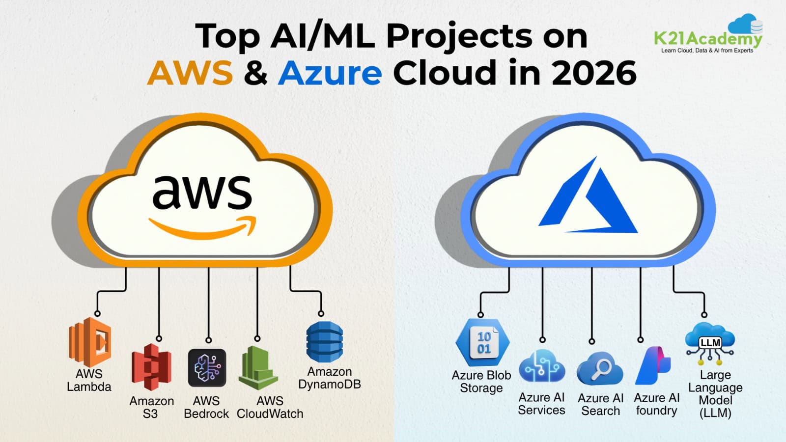 In this blog, we’ll take a closer look at the Top AI/ML Projects to Tackle in 2026 using the latest AWS and Azure technologies. These projects are designed to help you sharpen your technical skills, build a standout portfolio, and catch the eye of future employers. Ready to explore the exciting world of cloud-powered AI? Let’s dive in!