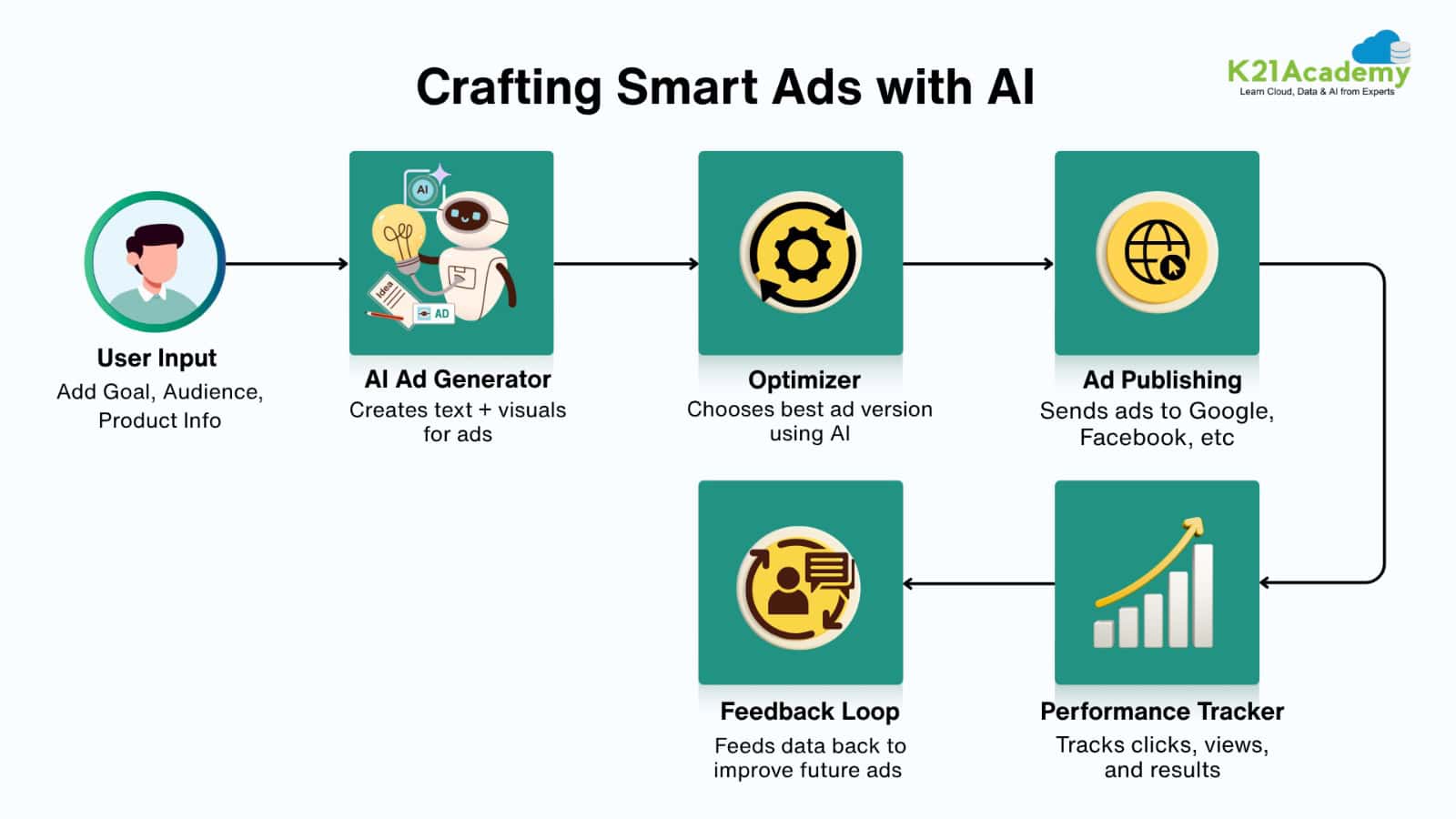 - AI Optimization – Machine learning models continuously learn and optimize ads for better performance.