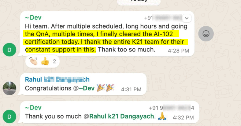 To be very honest I was very skeptical about paying for the course. I wasn’t sure if I did make the correct choice but believe it’s worth it. special shout out to Nisha Ma’am most of my doubts were cleared listening to her lecture. Also other trainers have also contributed their best. For someone like me who have decided to change career at her 40s and that too to an entirely different domain it’s scary but on the brighter side even if I pay’x’ amt but have confidence in having a bigger roi I would say just believe in ur self and go for it.