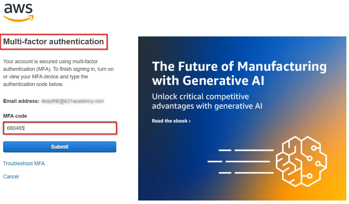 3) Use your Google Authenticator Application on mobile and enter the MFA code in the AWS Console.