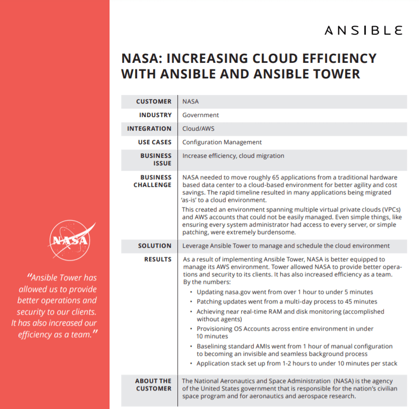 - Security automation: When you define your security policy in Ansible, scanning, and remediation of site-wide security policy can be integrated into other automated processes and instead of being an afterthought, it’ll be integral in everything that is deployed.