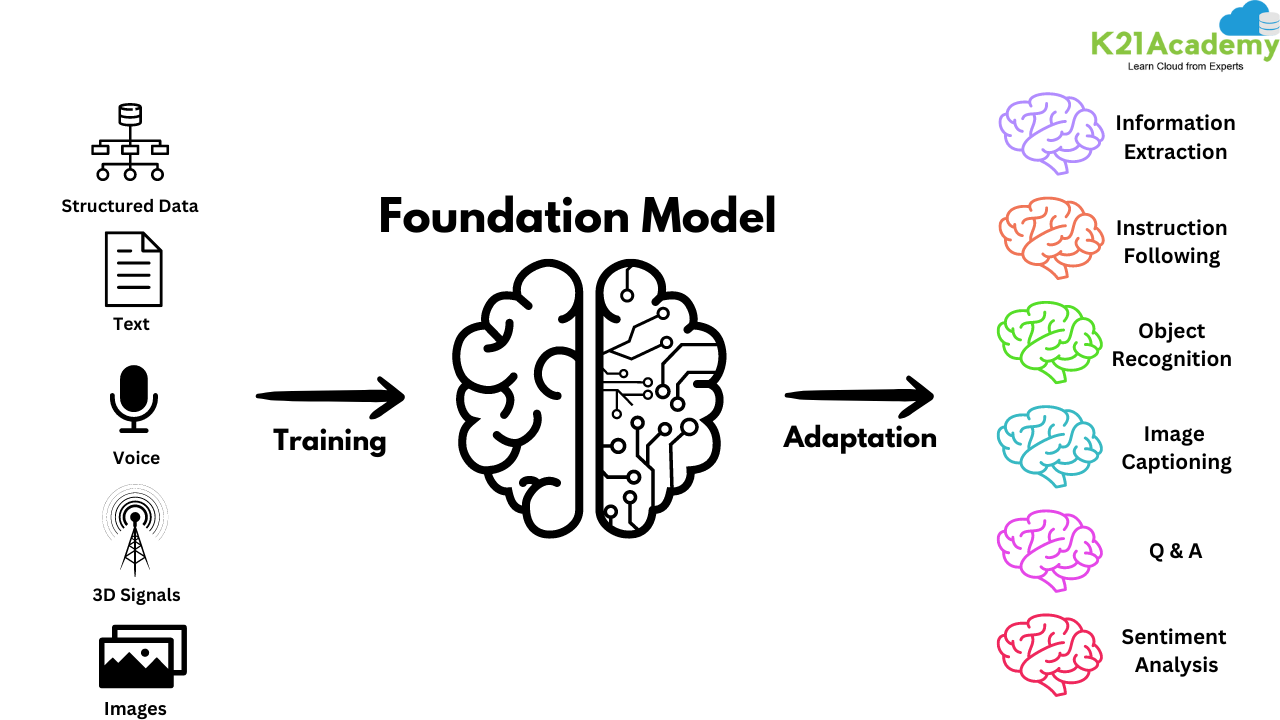 Adaptation: Once trained, The models can be fine-tuned for specific tasks using smaller, labeled datasets and prompts. This process tailors the model to perform specific functions effectively. For example, Amazon Bedrock allows developers to easily adapt pre-trained models for their needs.