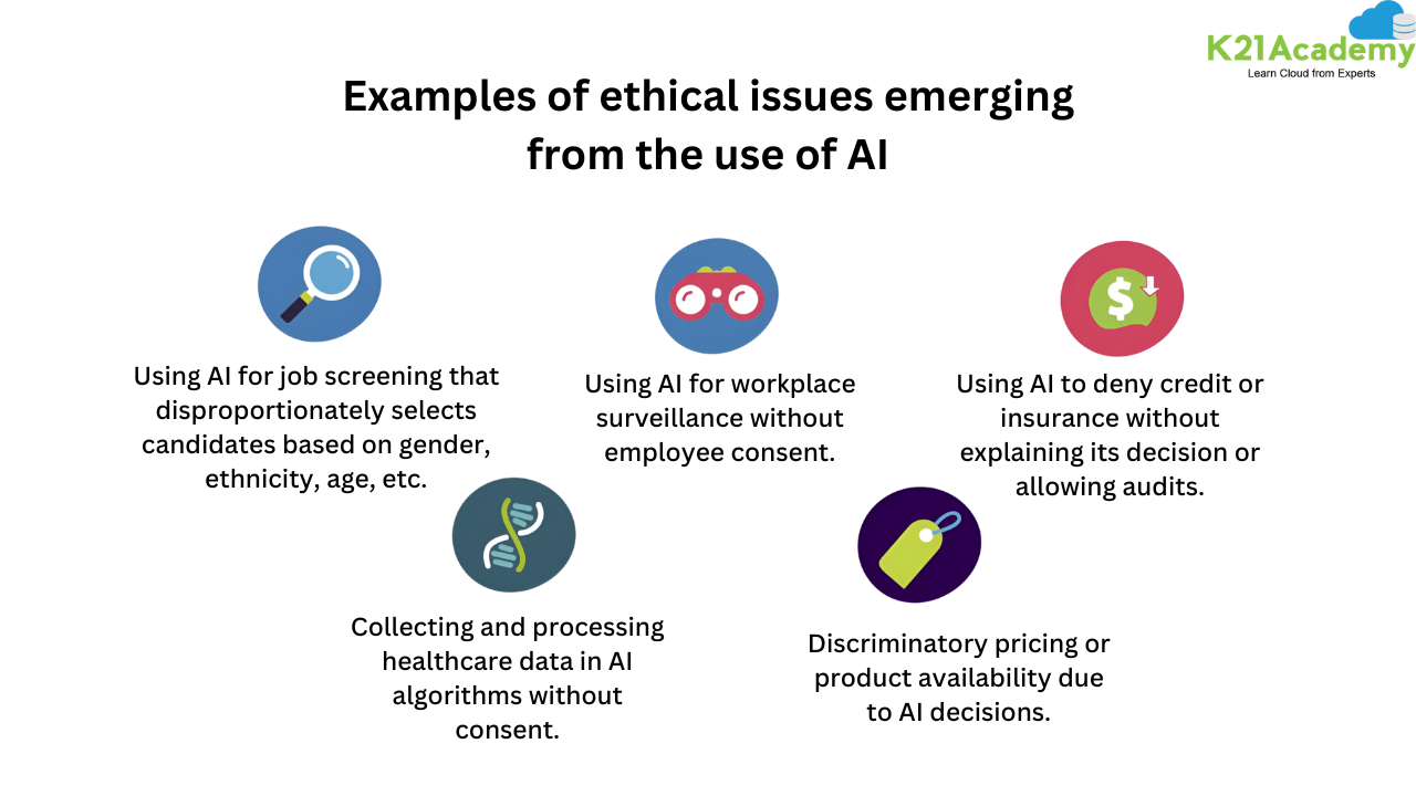 - Key concerns include data privacy, training data bias, and AI’s potential misuse.