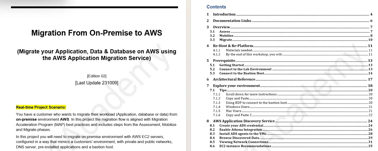 - Real-Life Simulation: Our project replicates a real-world scenario where a customer migrates their workload from on-premise to AWS. Following the Migration Acceleration Program (MAP) best practices, the project covers the Assessment, Mobilization, and Migration phases.