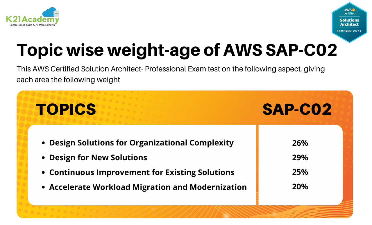The AWS Certified Solutions Architect Professional SAP-C02 exam is designed to test candidates’ ability to effectively demonstrate knowledge on: