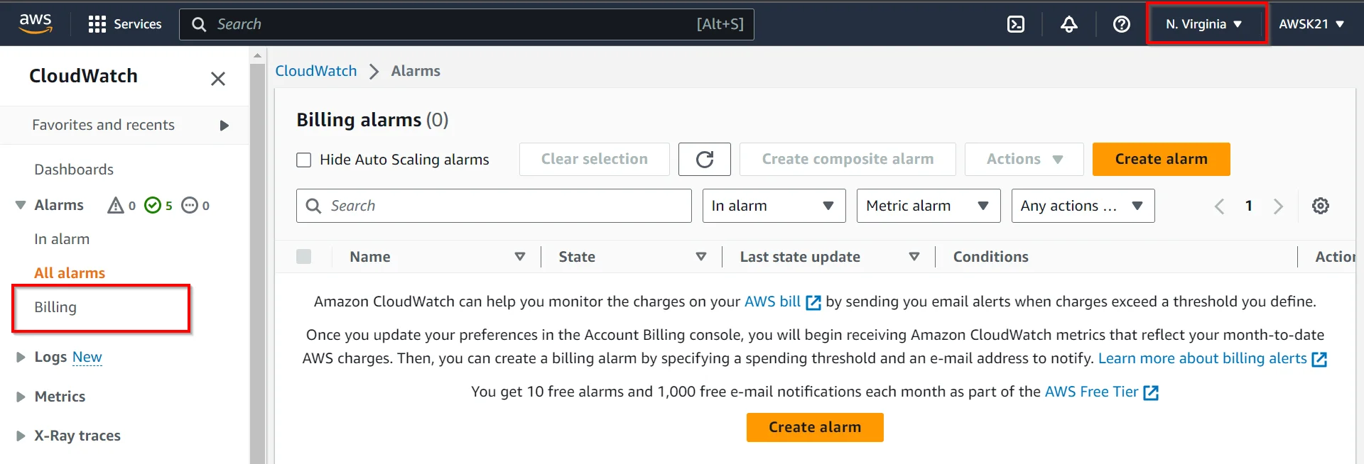 The North Virginia region is the most heavily used region in the AWS global infrastructure. This means that AWS has had the most experience with billing in this region, and it is the most likely region to be supported by future AWS features and services.