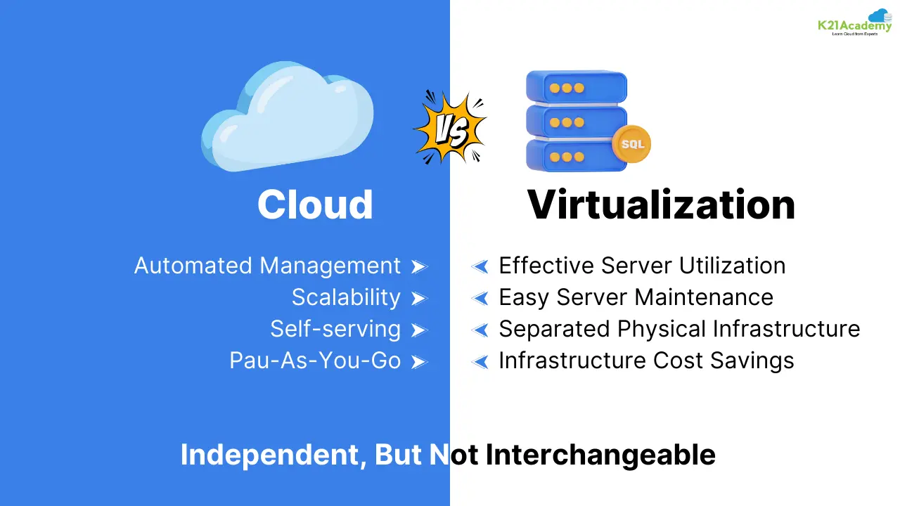Some people think that virtualization and cloud computing are synonymous. This misunderstanding leads to confusion about the unique benefits of cloud platforms like AWS.
