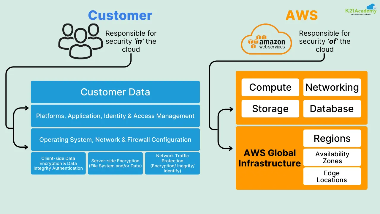 AWS employs multiple layers of security, including encryption, network protection, and compliance with industry standards. Additionally, it offers various tools to help customers manage access and safeguard data.