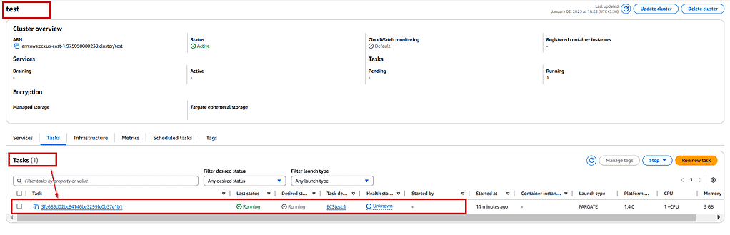 Task: A task is the instantiation of a task definition within a cluster. You have the option to specify the number of tasks that will run on your cluster.