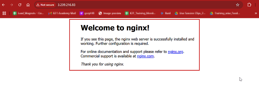 3.239.216.83in a browser. - Confirm the nginx welcome page is displayed.
