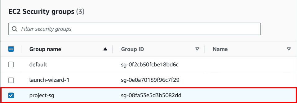 12. Under Configure instance traffic and scaling, choose a security group that we just created.