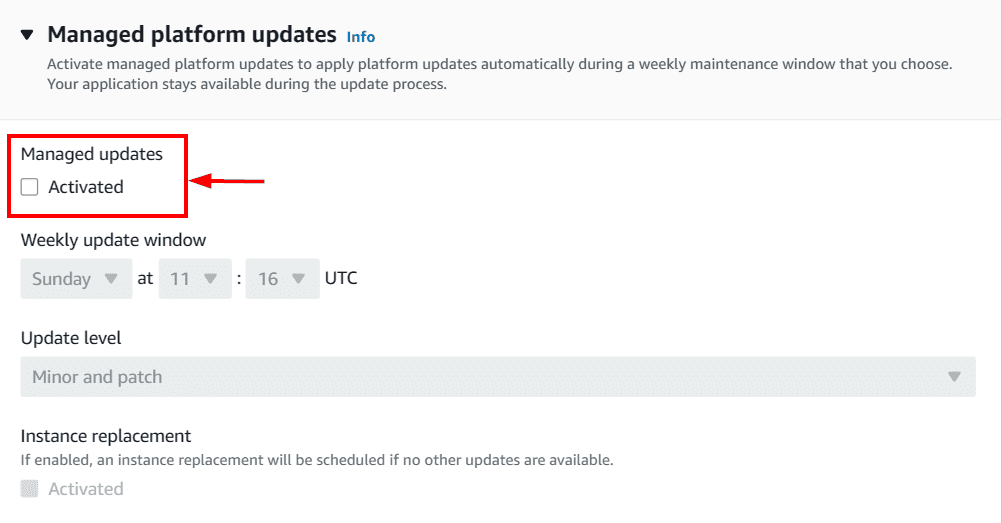 15. Deselect managed updates. Let rest everything by default and click on Next.