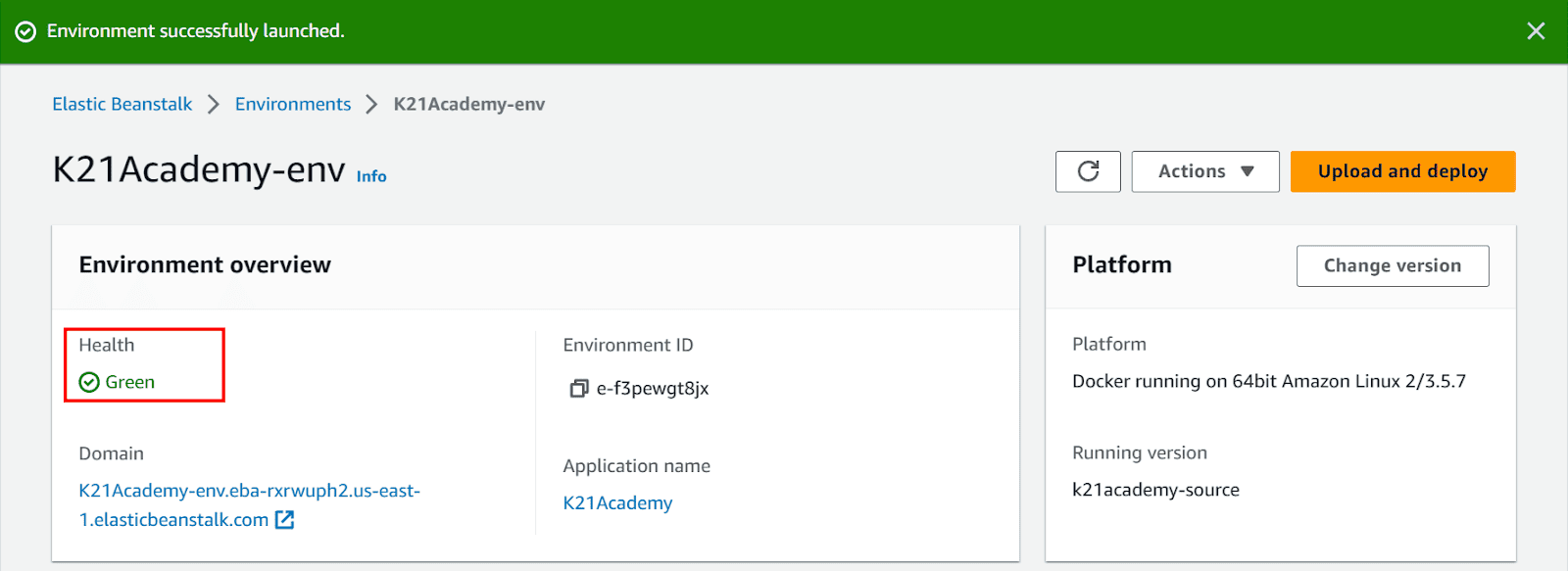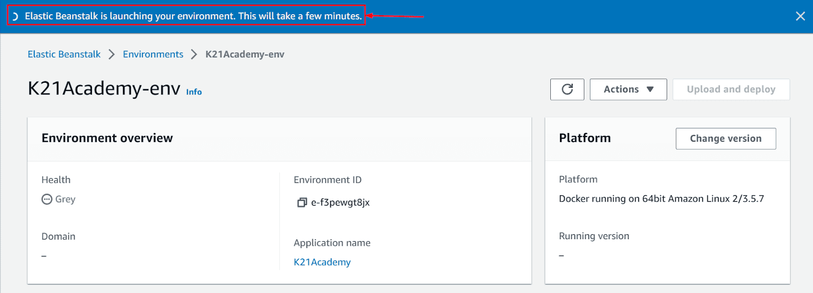Note: Elastic Beanstalk takes about 5-10 minutes to create the environment