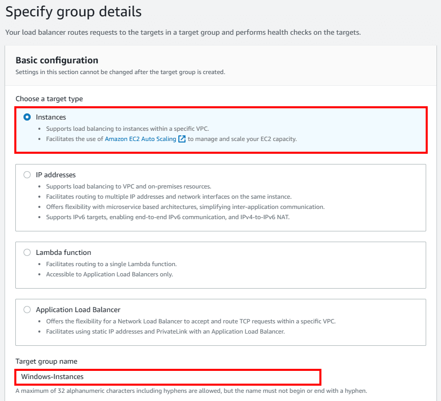 7: Once you click, a new page will pop up. Just enter the Target Group name. Here we have given it as Windows-Instances and rest everything default and click on Next.