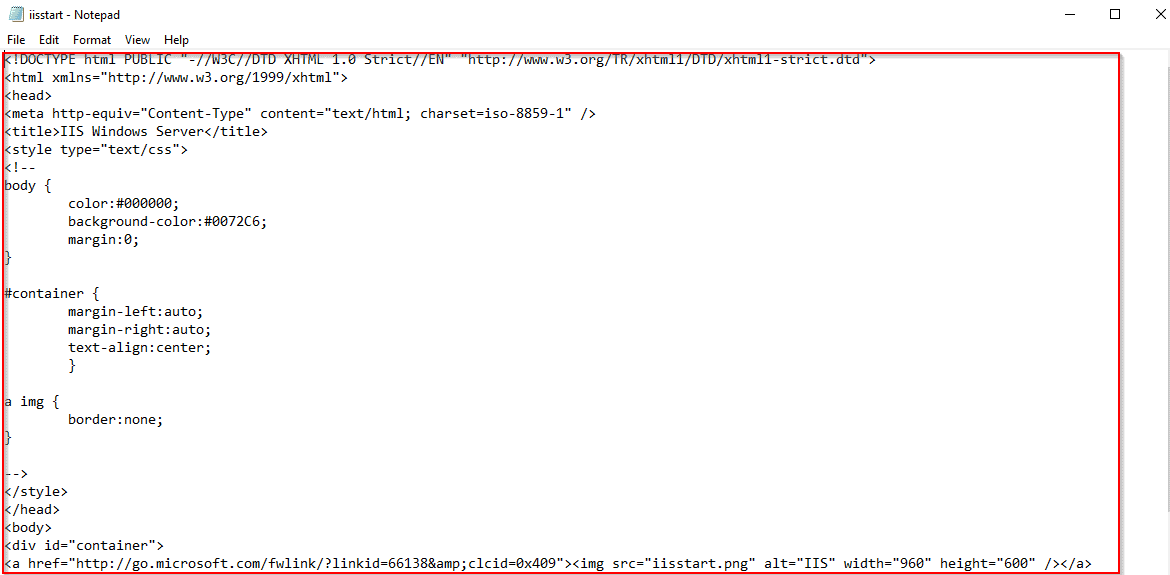 3: You will find an HTML document inside by the name iisstart, This will be the home page of your web server.