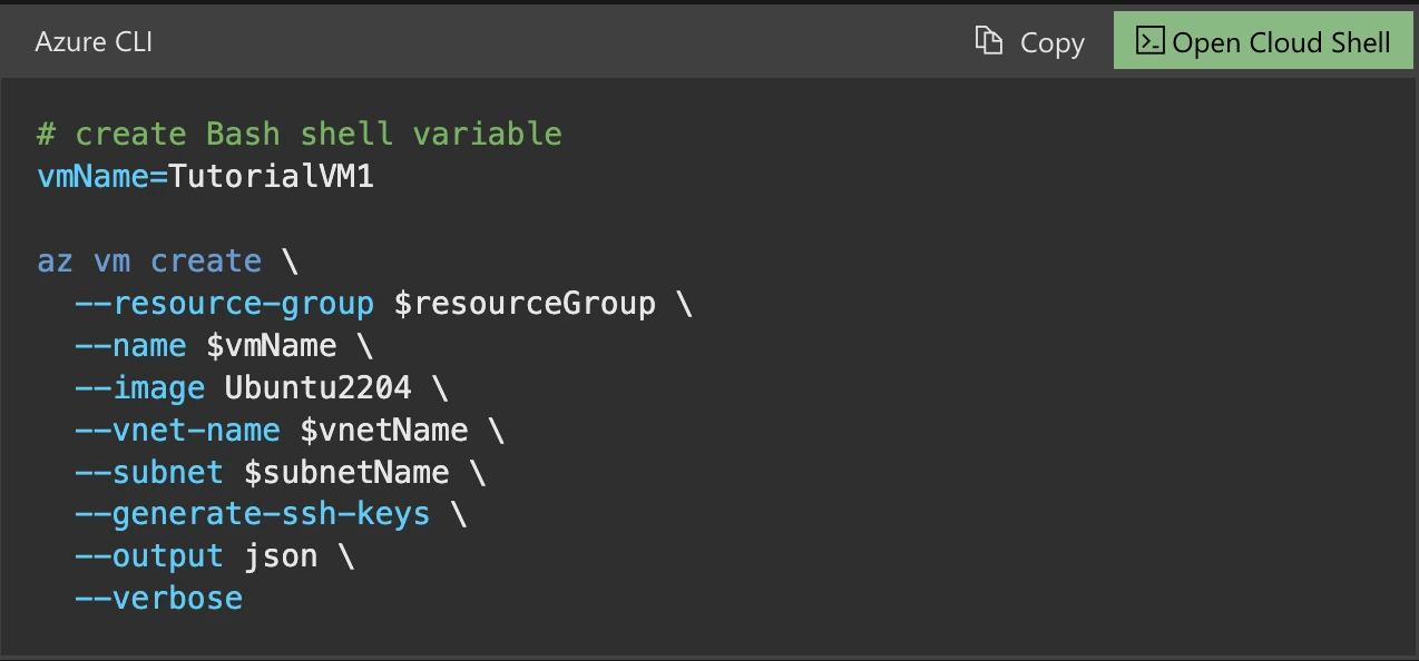 Next, we used another CLI command to create the Virtual Machine within the newly created Resource Group, setting up the necessary configurations like operating system, VM size, and network.