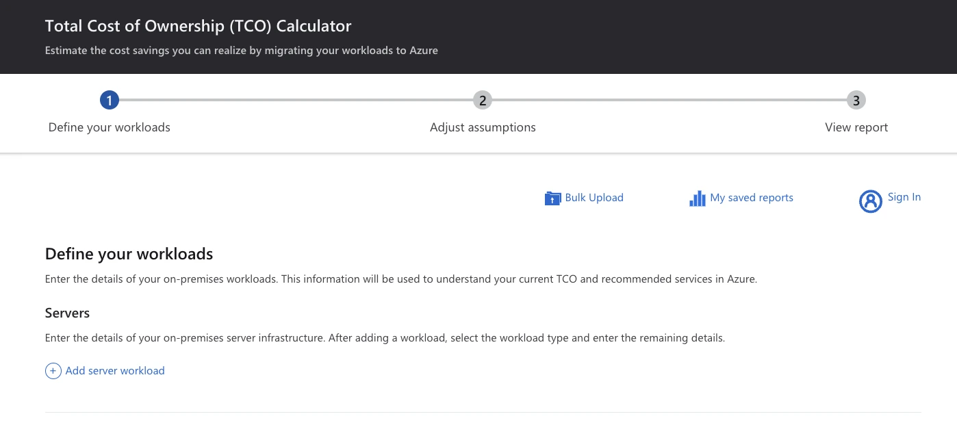 - Configure the TCO calculator