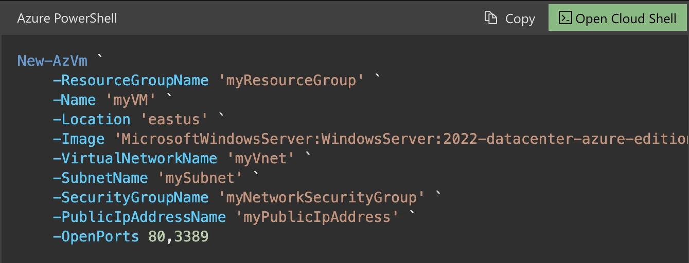 After successfully deploying the VM, you will connect to it using PowerShell commands.