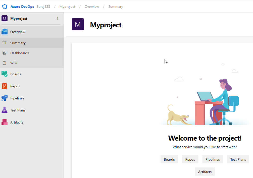 Step 9: You can see the all services in azure devops(Boards, Repos, Pipelines, Test Plans, Artifacts)