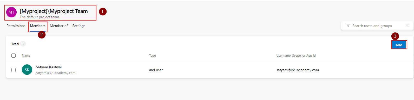 - Click on Add to add new members to the team