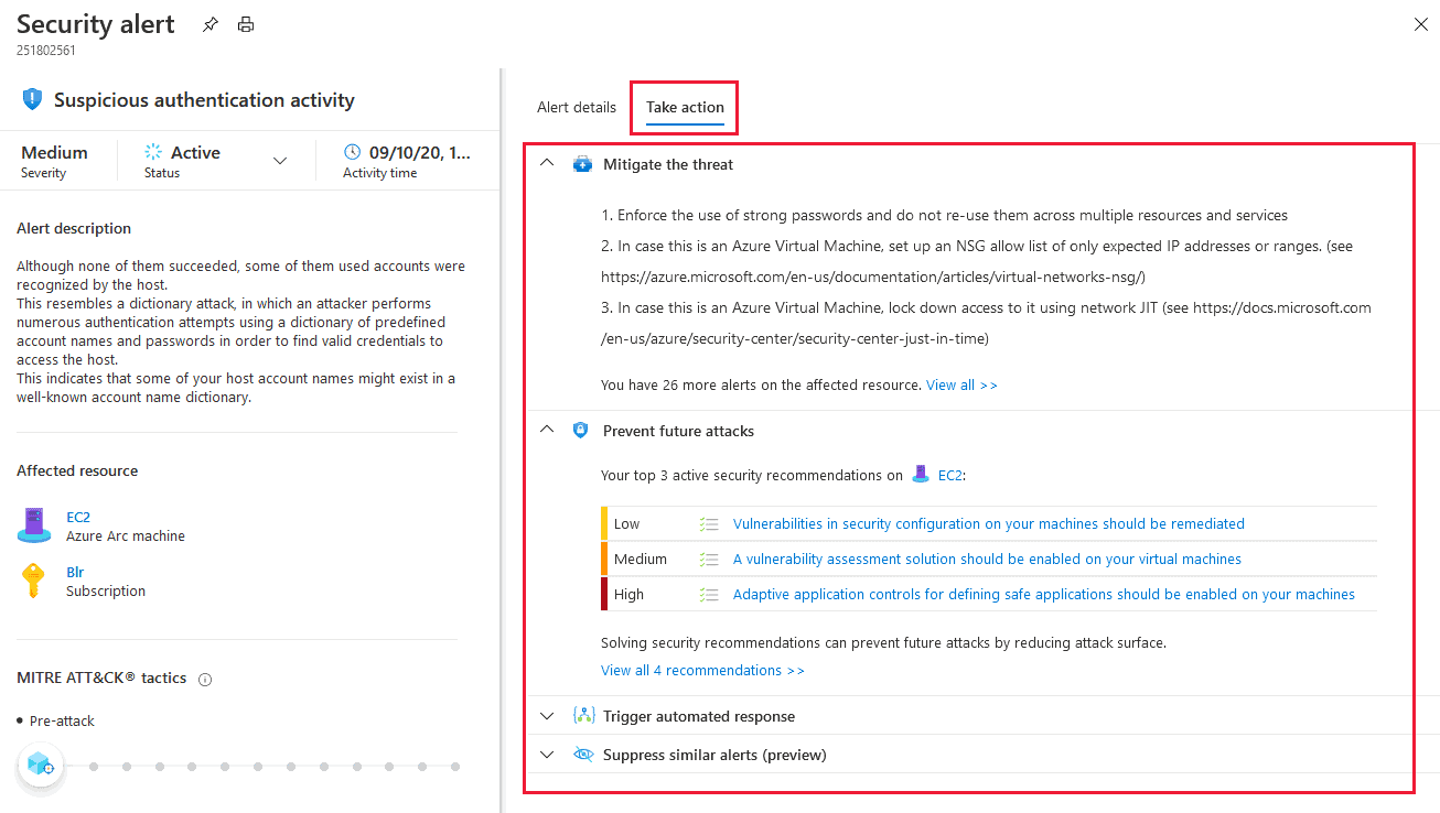 - Suppress similar attacks: suppress if that alert is not relevant to your organization.