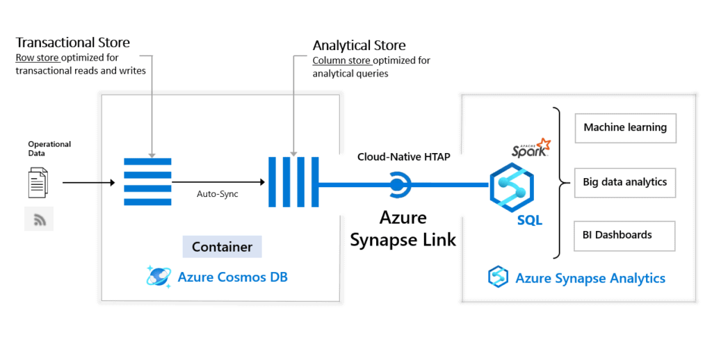 A. Microsoft recently launched Azure Synapse Link. Available in Azure Cosmos DB, it’s a cloud-native implementation of hybrid transaction/analytical processing (HTAP). It will soon be available in other operational database services such as: