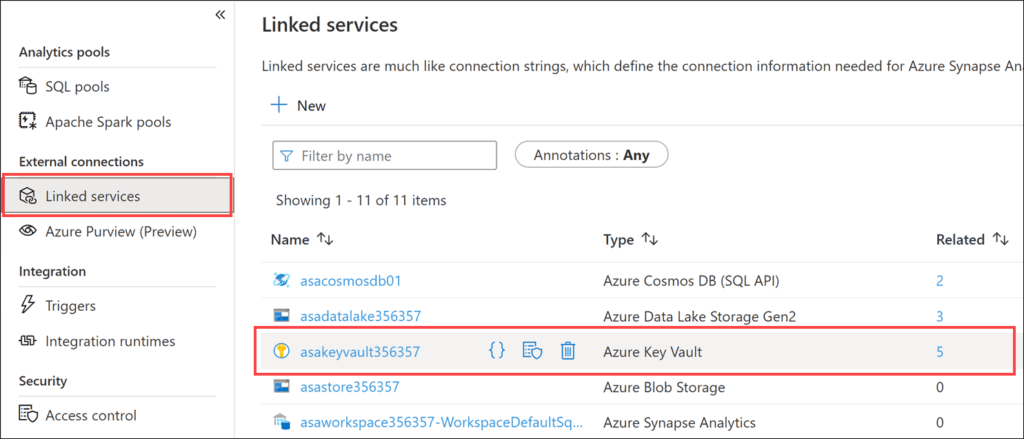 In this lab, you will learn how to manage this, assign Azure Key Vault into linked services and apply it to both Azure Synapse Analytics pipeline runs and dedicated SQL pools.