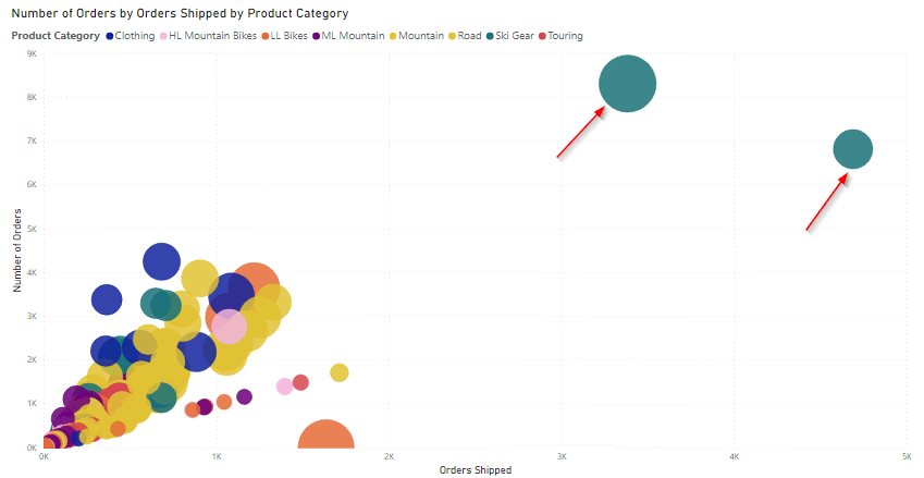 - The below image is an example of finding outliers using Power BI Visuals.