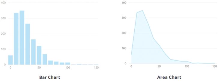 - In PowerBI terms, you can represent a histogram with one of the column chart or bar chart visuals and can represent a bell curve with an area chart visual, as shown in the following image.