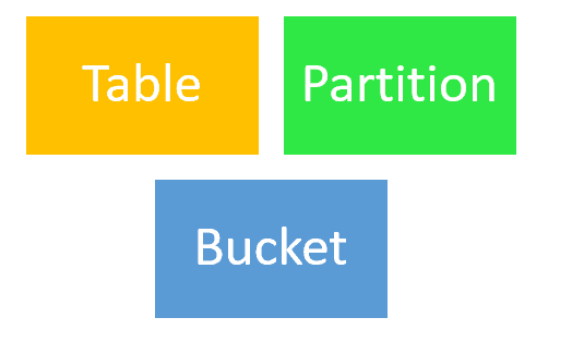 The partitions are further categorized into buckets based on the hash function of a column in the table. These buckets are stored as a file in the partition directory.