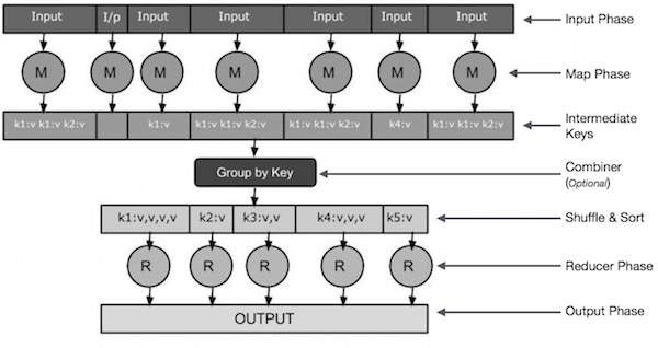 Input Phase − Here we have a Record Reader that translates each record in an input file and sends the parsed data to the mapper in the form of key-value pairs.