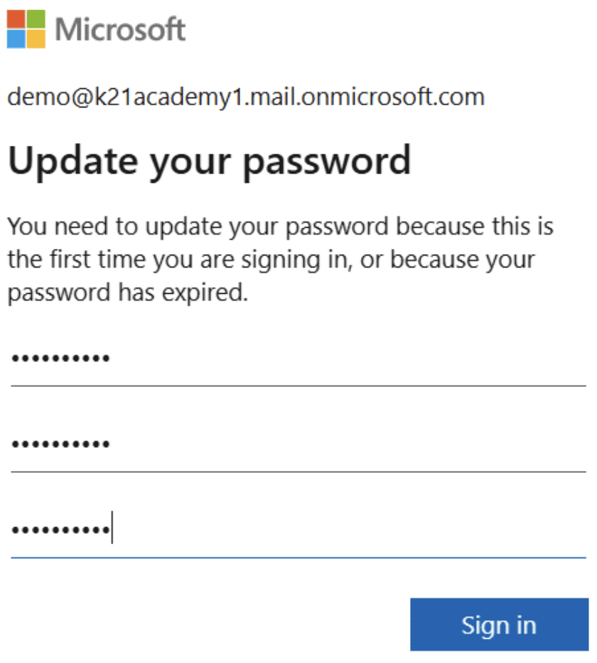 Step 4: Update the Password then click on sign in