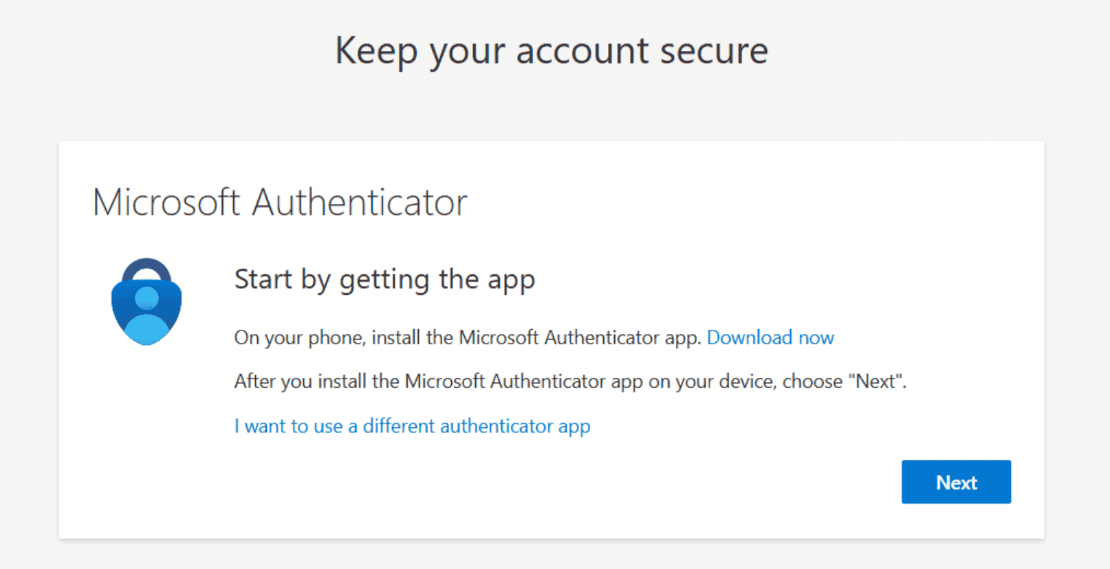 Step 5: Then shows you the Authenticator app which enables MFA for your account, click on Next