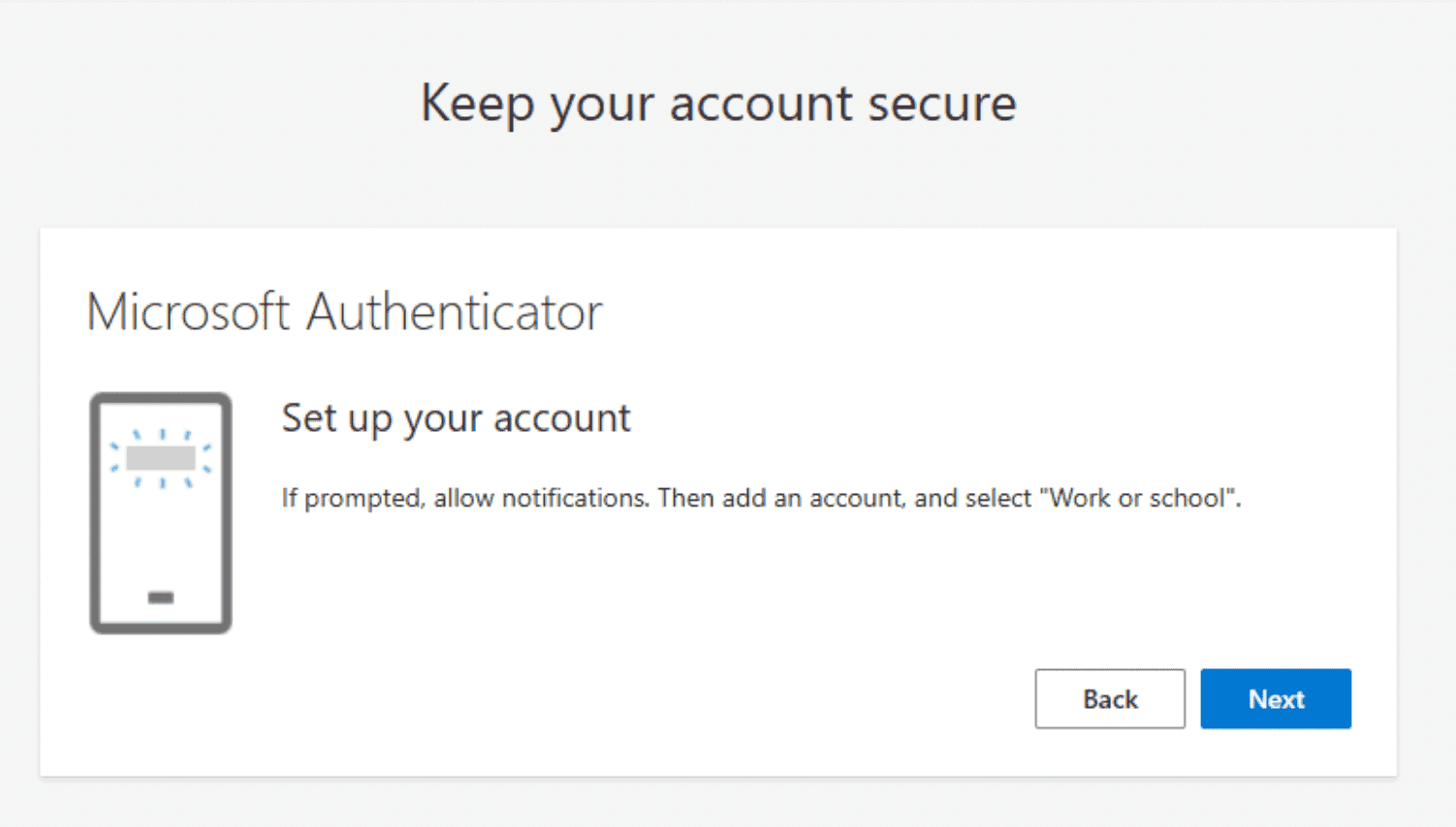 Step 6: Click Next on below screen to setup Microsoft Authenticator