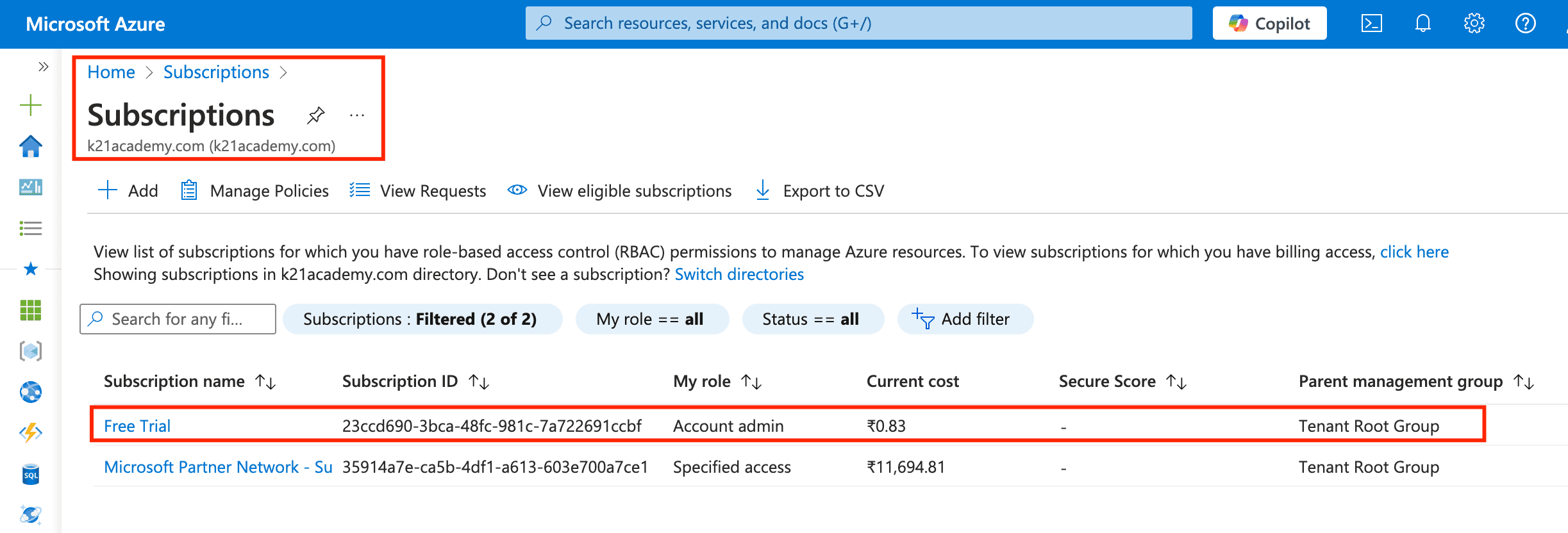 Note: Please ensure that your Azure portal is at least 3 months old. If your account is newer than that, these steps may not work as expected.