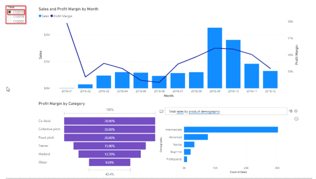 In this lab, you’ll enhance the Sales Analysis with advanced interactions and drill through features. You’ll learn how to work with Sync slicers and Drill through features. You’ll also Add bookmarks and buttons to your reports.