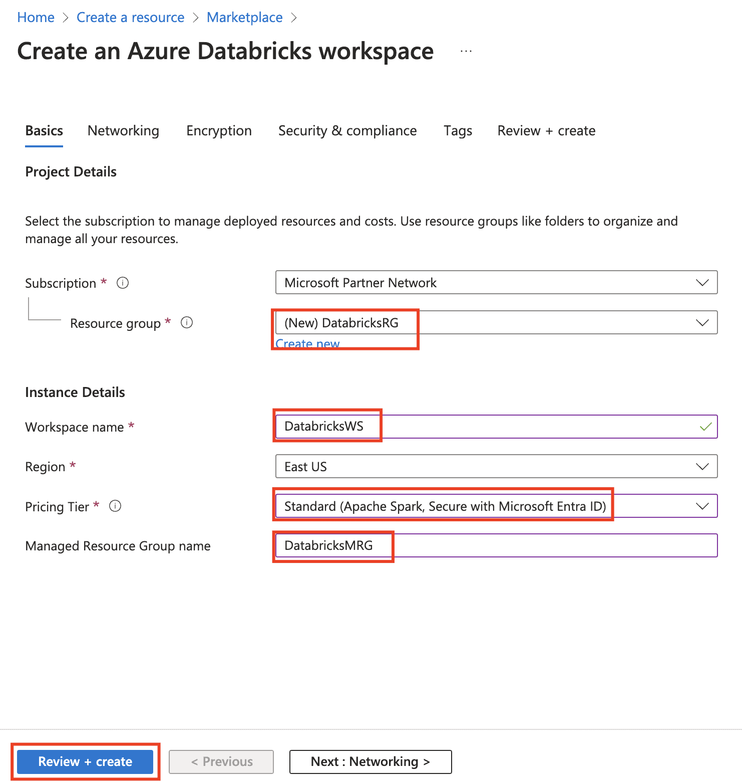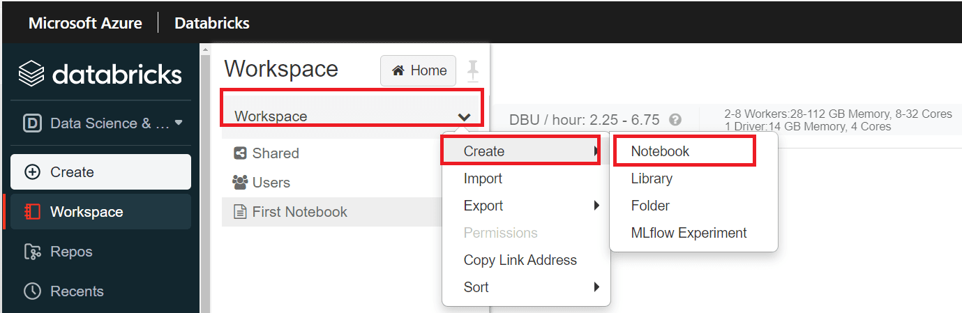 1. From the Azure portal provision Azure Databricks Workspace, select Create a resource → Analytics → Databricks. Enter the required details and Click on Review+Create.