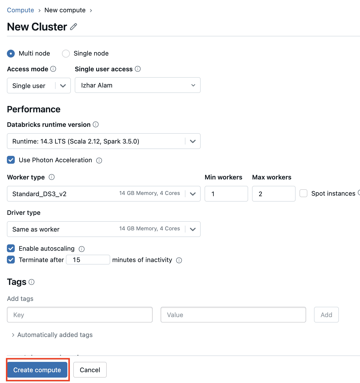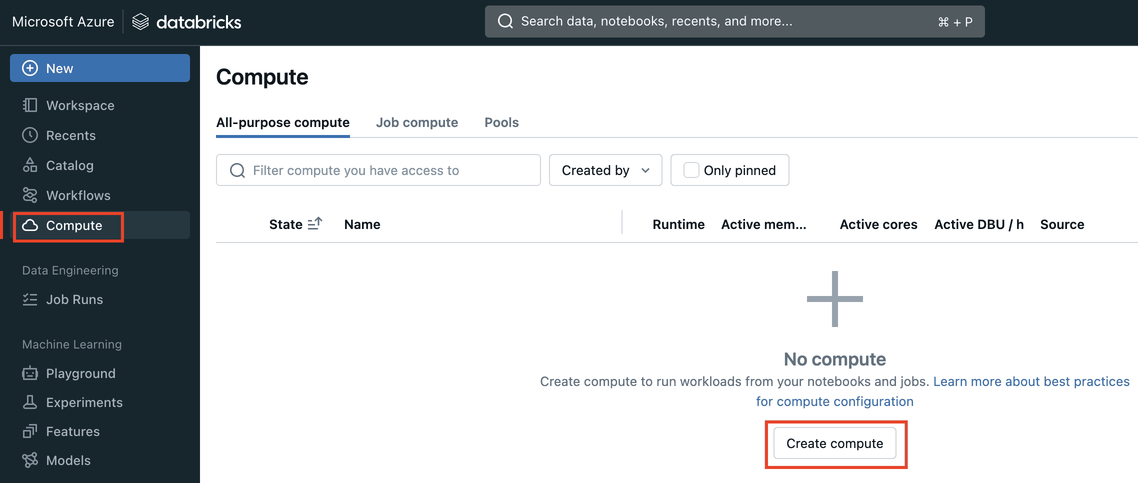 1. Open the Azure Databricks Workspace and click on the Create Compute.