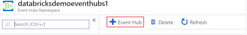 1) After your Event Hubs namespace is provisioned, browse to it and add a new event hub by selecting the + Event Hub button on the toolbar.