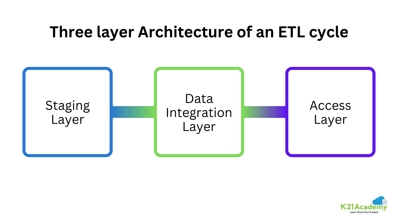 Q1) Explain the three-layer architecture of an ETL cycle.