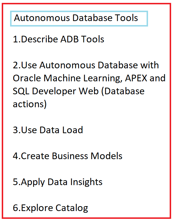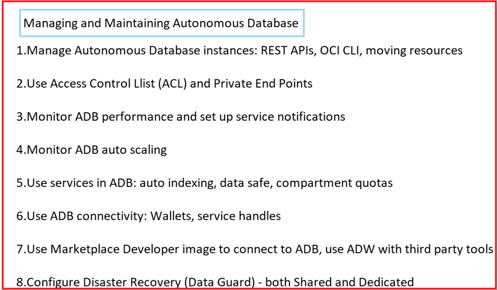If you planning to take this exam, you have to be well prepared with the topics Autonomous Database Overview & Architecture, Provision & Connectivity, Migration & Data Loading in Autonomous Database, Managing & Maintaining Autonomous Database, Monitoring Autonomous Database & using Tools, Reporting and Analytics using Autonomous Data Warehouse (ADW), So Once you are done with learning these topics & doing Hands-on Cloud, you are ready for the exam.