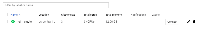 The first step is to create a Kubernetes cluster using the console. In the example below, a new cluster on GKE is created with name ‘helm-cluster’. As Helm is platform-independent,