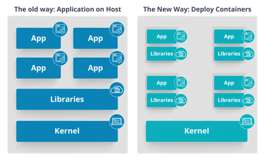 4. What is the difference between deploying applications on hosts and containers?